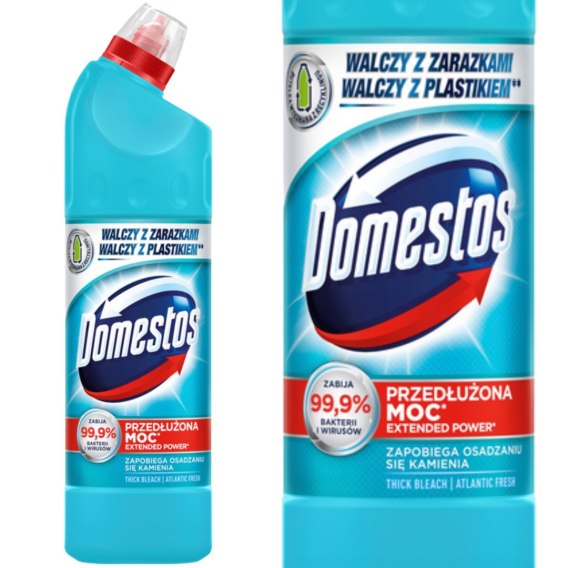 Przedstawiamy Państwu wyjątkowy produkt, który skróci czas sprzątania i zapewni niezrównaną ochronę przed zarazkami - Płyn do WC Domestos 1000ml Atlantic Fresh Niebieski o wyjątkowych właściwościach dezynfekujących i odświeżających.