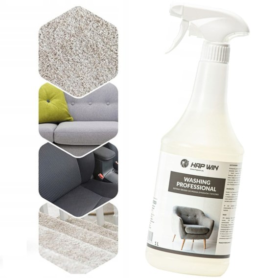Hap Win Washing Professional Extra 1 l to profesjonalny, gotowy do użycia płyn czyszczący, który skutecznie usuwa brud oraz uporczywe plamy z dywanów, tapicerki, wykładzin i innych materiałów. Dzięki innowacyjnej formule, środek powoduje wydobywanie się brudu na zewnątrz, przywracając powierzchniom ich naturalny kolor. Posiada silne właściwości neutralizujące przykre zapachy, pozostawiając przyjemny, świeży aromat.
