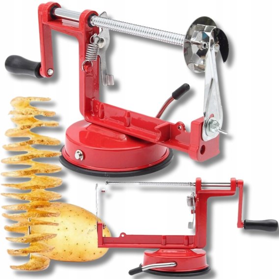 Urządzenie umożliwia precyzyjne krojenie ziemniaków i warzyw w zakręcone spirale, które można smażyć w gorącym oleju przez 3-4 minuty i podawać z ulubionymi przyprawami. Krajarka jest wygodna w użyciu, stabilna dzięki przyssawce, a jej stalowa konstrukcja gwarantuje trwałość i wysoką jakość wykonania.