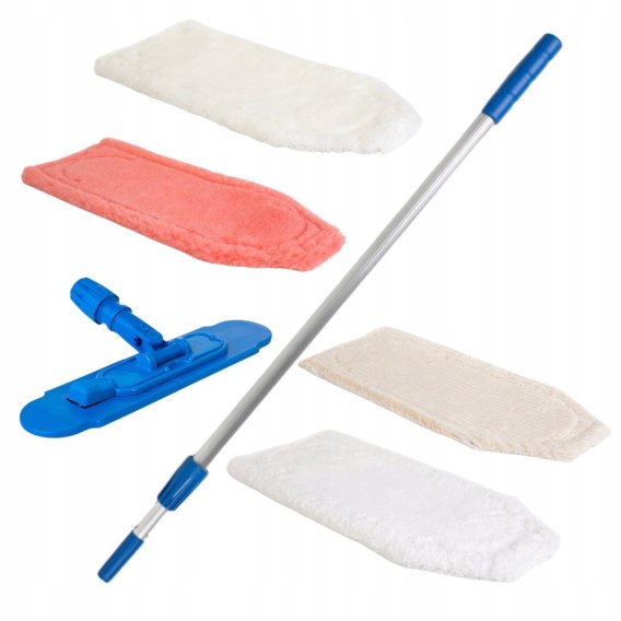 Zestaw do Podłogi to połączenie wysokiej jakości narzędzi: Aluminiowego drążka teleskopowego 165cm, Uchwytu błyskawicznego, oraz różnorodnych poduszek podłogowych (Biała, Beżowa Pielęgnacyjna, Różowa, Biała NOVA). To doskonały wybór dla osób ceniących wygodę, skuteczność i ekologię w sprzątaniu.