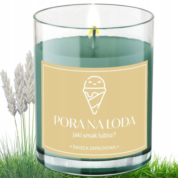 ŚWIECA SOJOWA ŚWIECZKA ZAPACHOWA wesoła etykieta PORA NA LODA PREZENT 40H