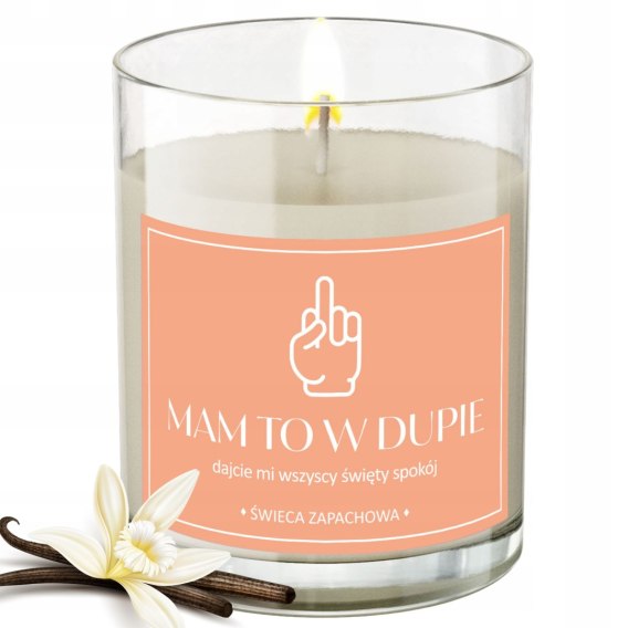 ⭐ŚWIECA SOJOWA ŚWIECZKA wesoła etykieta " MAM TO W DUPIE " 40H⭐